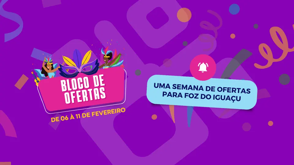 A energia do Carnaval já invadiu a MMC e o bloco de ofertas está chegando para contagiar e vacilitar a vida do viajante com super descontos. O período de compra vai do dia 06 até o dia 11 de fevereiro, durante esses dias você terá a oportunidade de montar o seu roteiro de viagens com um precinho único, é só cair na folia de ofertas e aproveitar muito!!!